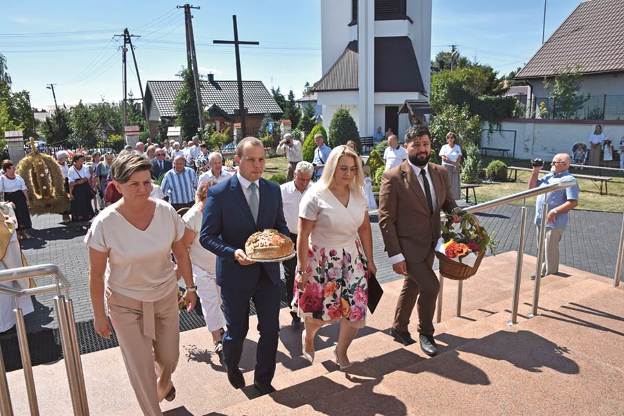 – A to przecież dzięki wam na naszych stołach gości chleb i inne dary naszej pięknej ziemi, którą w takim trudzie i znoju, bez możliwości wzięcia urlopu czy zwolenienia, uprawiacie od pokoleń. Za to poświęcenie wszyscy jesteśmy niezmiernie wdzieczni – tłumaczył zebranym Kozyra, a następnie z przewodniczącą i wiceprzewodniczącym rady gminy w osobach Honoraty Dyczkowskiej i Waldemar Nafalskiego poczęstowali zebranych chlebem upieczonym ze zbóż zebranych w ostatnich żniwach. Dożynki zakończył występ Mariusz Matery oraz Dariusza Tokarzewskiego z zespołu Vox. (bm)