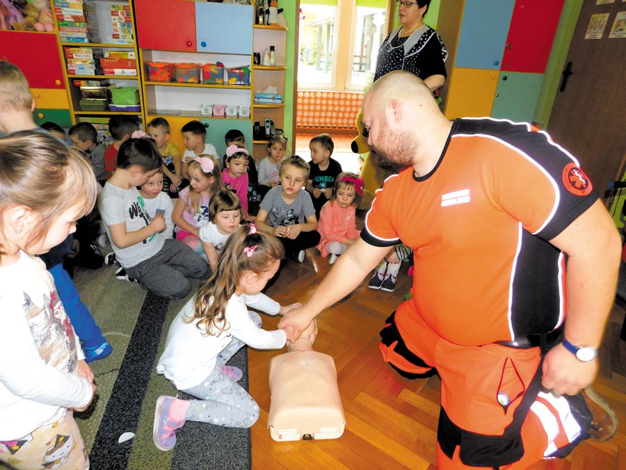 Celem spotkania było oswojenie dzieci ze służbami ratowniczymi, utrwalenie numerów alarmowych oraz przybliżenie przedszkolakom zasad zachowania się w sytuacji zagrożenia zdrowia i życia. Dzieci miały również możliwość zobaczyć z bliska pojazd ratowniczy. Na zakończenie spotkania wszystkie przedszkolaki otrzymały naklejki dzielnego pacjenta. (-)