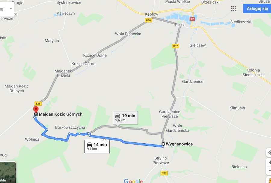Choć Wygnanowice od Majdanu Kozic Górnych leżą praktycznie na jednej szerokości geograficznej i w linii prostej dzieli je zaledwie kilka kilometrów, to dojechanie z jednej miejscowości do drugiej zajmuje blisko 20 minut i jest mocno utrudnione. Najpierw trzeba jechać odcinkiem asfaltowej drogi powiatowej z Wygnanowic do Felina, później utwardzoną tłuczniem, należącą do gminy Piaski, drogą między Felinem a Borkowszczyzną, by znowu wjechać na asfaltową powiatówkę z Borkowszczyzny do Majdanu Kozic Górnych.