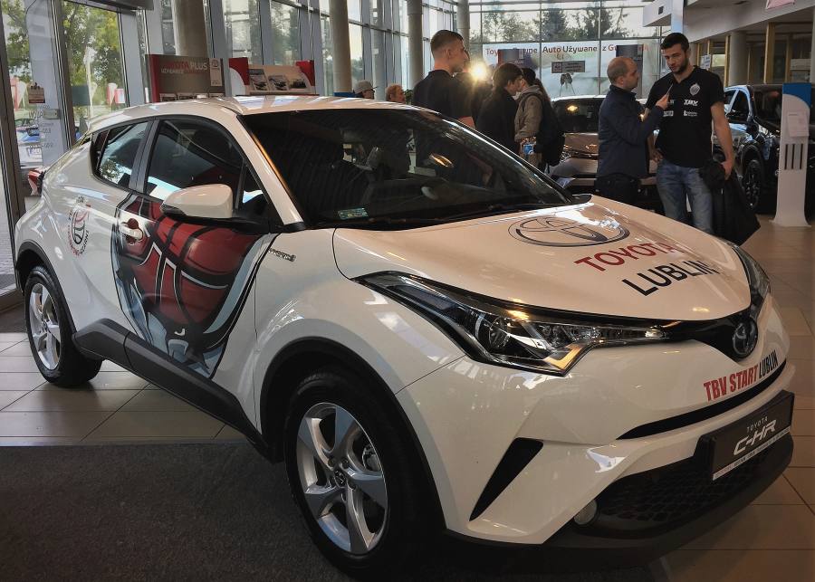 W ubiegłym tygodniu podczas briefingu prasowym w salonie Toyota Auto Park Lublin koszykarze TBV Startu zaprezentowali cztery nowe samochody hybrydowe: jeden model Toyota RAV4 oraz trzy modele Toyota C-HR.