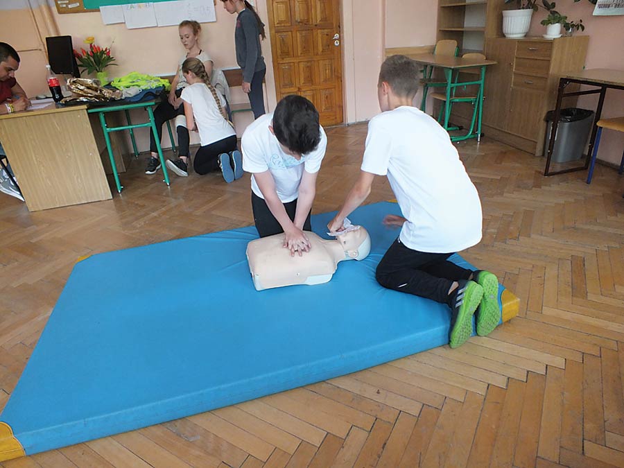 Następnie pokonywali tor przeszkód składający się z dziewięciu elementów. Ponadto cała drużyna wykonywała zadanie praktyczne z zakresu udzielania pierwszej pomocy przedmedycznej. Konkurencję oceniał ratownik medyczny Michał Olszewski. W kat. szkół podstawowych najlepsza okazała się Szkoła Podstawowa nr 3 w Krasnymstawie w składzie: Krystian Galewski, Emilia Mazurek, Wiktor Wiśniewski, Ines Dziedzic (opiekun – Paweł Haładyj). Drugie miejsce zajęła SP w Krupem w składzie: Krzysztof Kocimski, Hubert Moń, Daria Filipczak, Luiza Dulbas (opiekun Mariusz Gronkowski), trzecie SP z Siedlisk Drugich (Mateusz Szymczuk, Paulina Michalak, Łukasz Wiśniewski, Amelia Pitucha, opiekun – Kamil Siwczyński), a czwarte SP nr 1 w Krasnymstawie (Julia Miszczak, Aleksandra Tarasewicz, Kacper Kowalski, Damian Kurzyński, opiekun – Adriana Łysakowska).