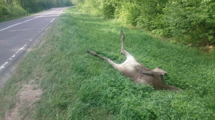 Przez kilka dni dwa martwe łosie leżały przy trasie włodawskiej. Kierowcy słusznie pytają: Dlaczego żadne służby nie usunęły martwych zwierząt?
