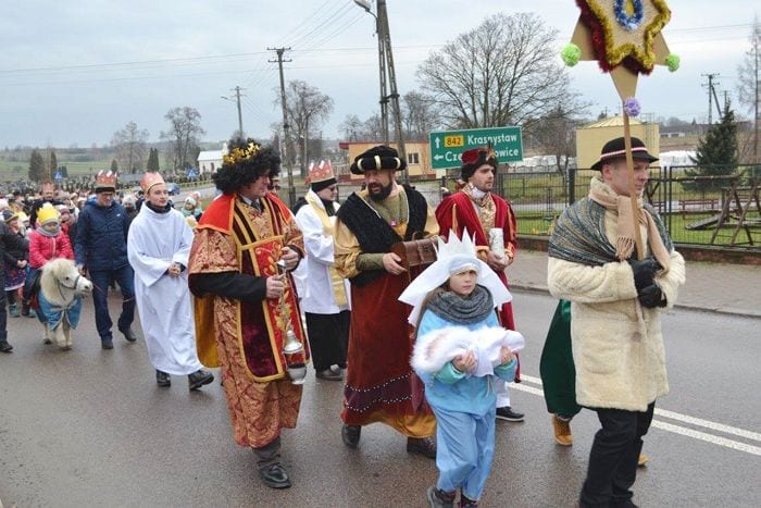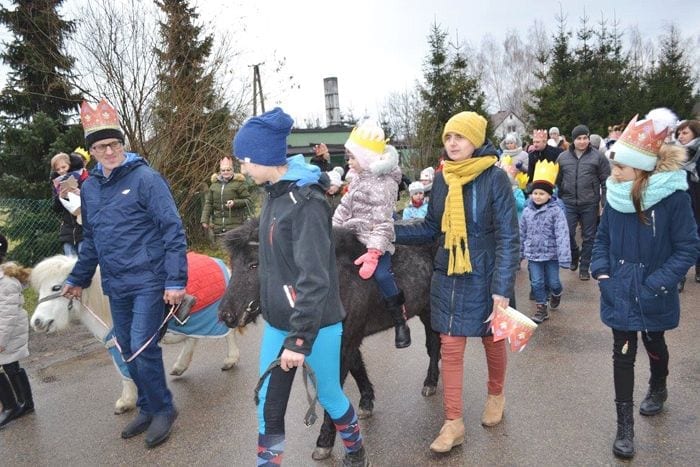 Orszak Trzech Króli uformował się na placu przy Centrum Społeczno-Kulturalnym w Gorzkowie. Nad bezpieczeństwem świętujących czuwały radiowozy policji z Krasnegostawu. Orszak poprowadziła Dominika Młynarczyk z Czystej Dębiny na swoim pięknym rasowym koniu „Hurysa”, niosący gwiazdę Radosław Konofał z Borowa oraz dzieci: w roli Maryi – Zuzanna Zegar, w roli Józefa – Oskar Konofał. – Za nimi znajdowali się Trzej Królowie: Marek Chudziak z Chorupnika, Marian Szewczak z Bobrowego oraz Artur Krzyżanowski z Borowa – relacjonuje kierownik CSK Barbara Lachowska. Orszakowi towarzyszyły koniki – kucyki Oliwii Stępień i Radosława Parki z Chorupnika. Za nimi maszerowała gromada dzieci w barwnych strojach i koronach. Orszakowi towarzyszył śpiew kolęd w wykonaniu Wokalnego Zespołu Żeńskiego z Centrum Kultury i Chóru Kościelnego, przy akompaniamencie muzycznym Dariusza Polichy. – Wśród maszerujących byli: księża parafii, wójt gminy Marek Kasprzak, nauczyciele, przedstawiciele myśliwych, emerytów, pracownicy gminy, przedsiębiorcy, rolnicy, mieszkańcy gminy i przyjezdni goście – dodaje. Orszak podążył do kościoła parafialnego gdzie odbyła się uroczysta msza święta odprawiona przez ks. wikariusza Marcina Smalca i ks. proboszcza Krzysztofa Adamowskiego. (k)