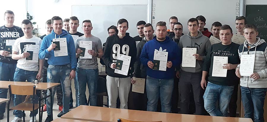 Kursy zostały przeprowadzone w ramach realizowanego przez ZSP w Żółkiewce projektu „Edukacja zawodowa uczniów w rzeczywistym środowisku” współfinansowanego przez Unię Europejską ze środków Europejskiego Funduszu Społecznego. Zaświadczenia kwalifikacyjne w zawodzie pilarz-drwal zyskało 8 uczniów, natomiast zaświadczenia i książeczki spawacza wydane przez Instytut Spawalnictwa w Gliwicach uprawniające do spawania metodą MAG – 12. (k)
