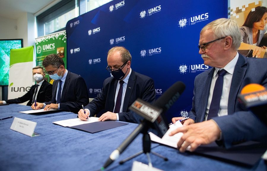 W piątek w Centrum Ecotech-Complex w Lublinie podpisana została stosowna umowa pomiędzy firmą Intermag, a Uniwersytetem Marii Curie-Skłodowskiej w Lublinie oraz Instytutem Uprawy Nawożenia i Gleboznawstwa. – Chcę podziękować prezesowi Hubertowi Kardaszowi za to, że firma Intermag podjęła się komercjalizacji tych czterech wynalazków. Staramy się dynamizować naszą współpracę z otoczeniem społeczno-gospodarczym. W dotychczasowej historii UMCS to pierwsza tak duża komercjalizacja – powiedział rozpoczynając konferencję, rektor największej uczelni w regionie, prof. Radosław Dobrowolski.