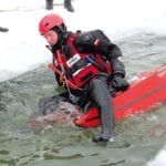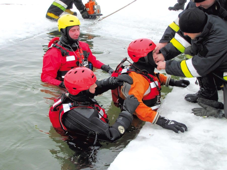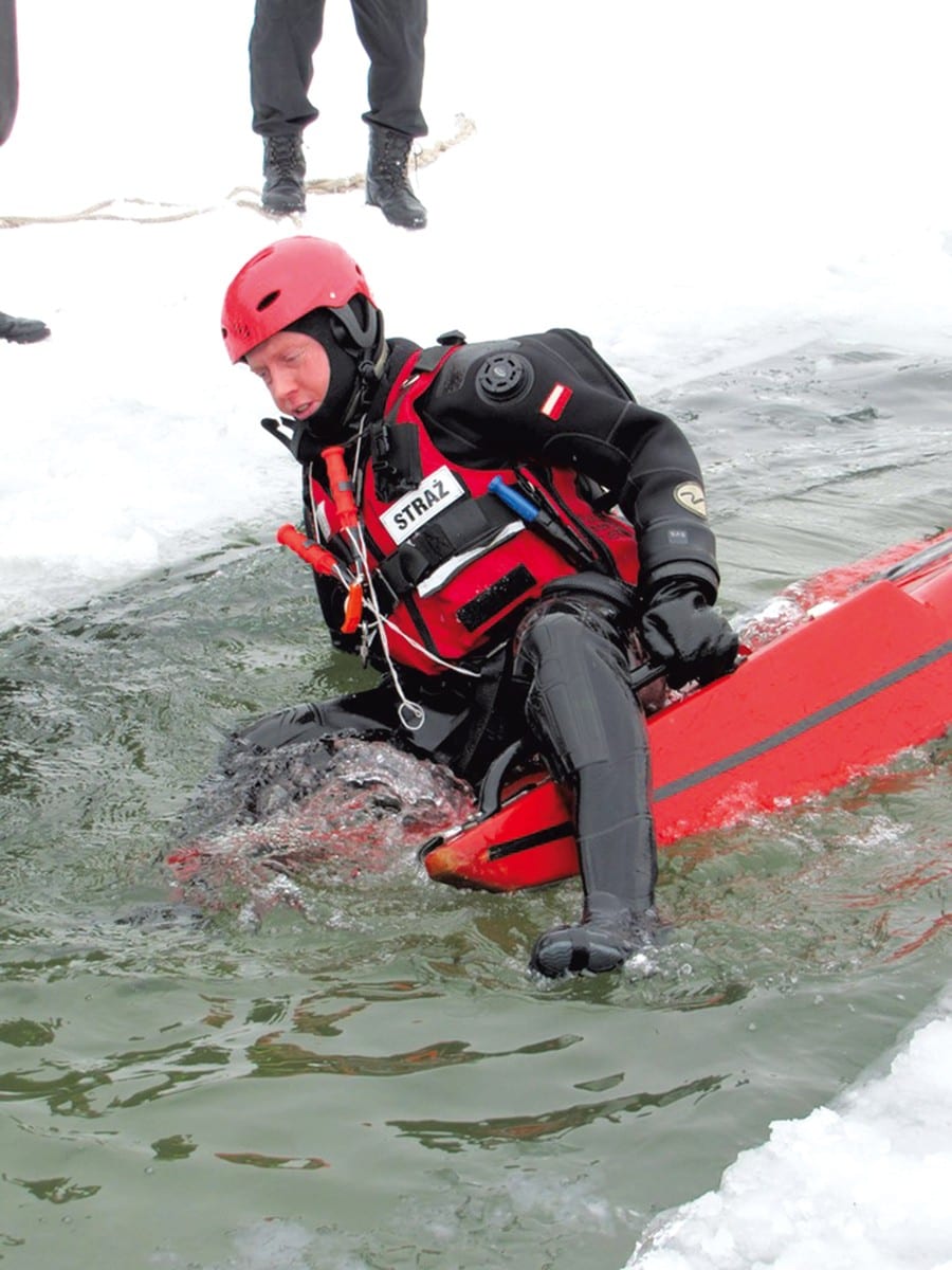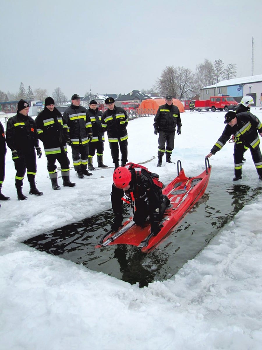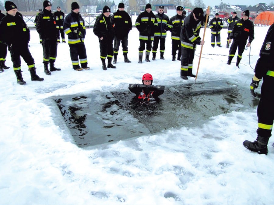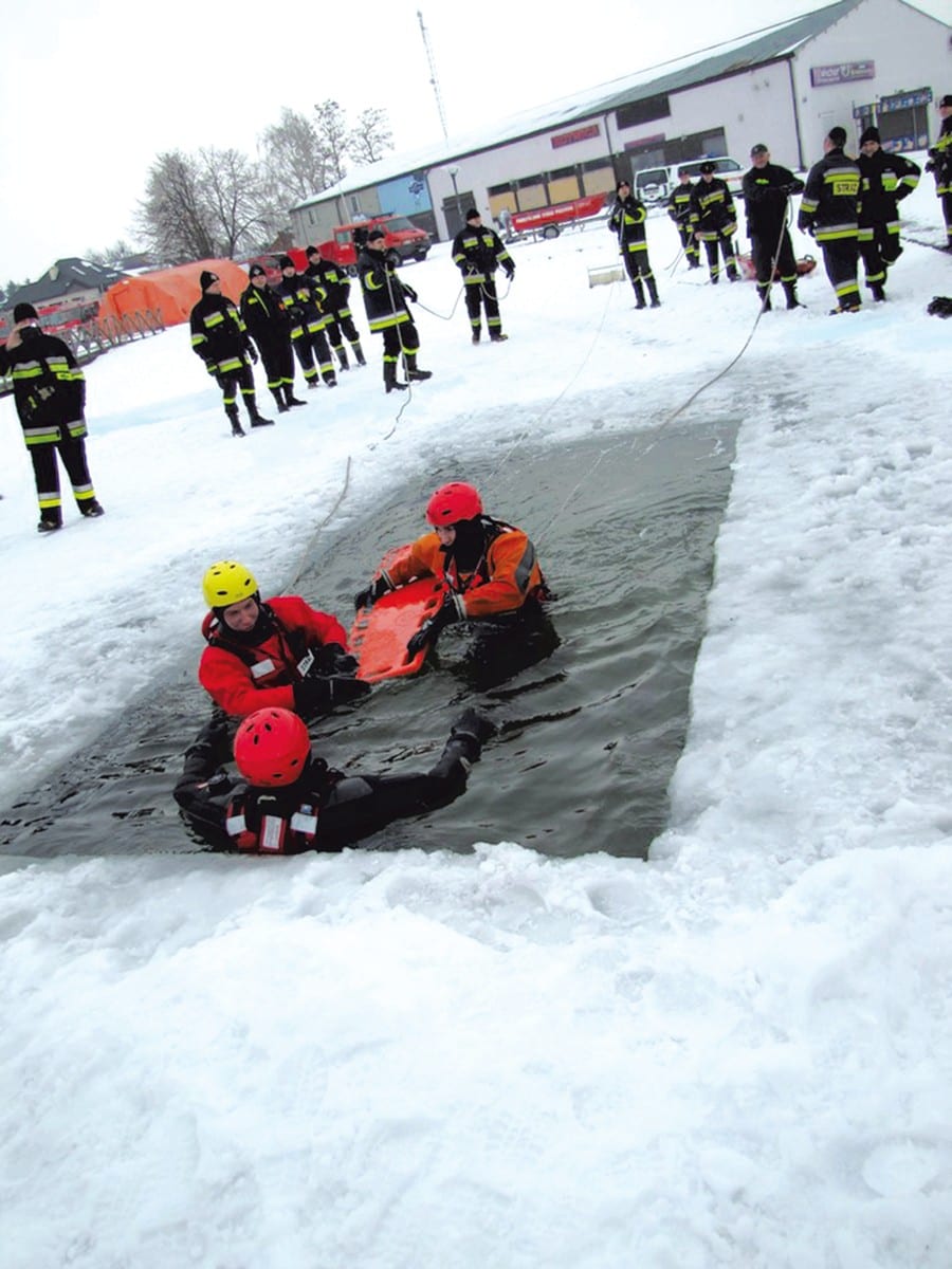– Najpierw przeprowadziliśmy szkolenie z części teoretycznej, które odbyło się w KP PSP Włodawa – mówi mł.bryg. Waldemar Makarewicz z PSP we Włodawie. – Trening praktyczny odbył się na Jeziorze Białym. Na miejscu rozstawiony został namiot pneumatyczny z nagrzewnicą. Następnie wycięliśmy przerębel w lodzie i przećwiczyliśmy różne sposoby ratowania ludzi, pod którymi załamał się lód – dodaje rzecznik. (bm, fot. mł. kpt. Michał Tychoniewicz)