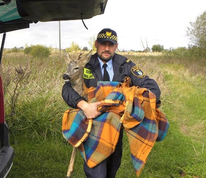 Ponadto stwarzało realne zagrożenie w ruchu drogowym. – Sarna uderzając w okoliczne ogrodzenia wbiegła w końcu na jedną z posesji w obrębie ulicy Cichej – opowiada Jacek Policha, komendant straży miejskiej w Krasnymstawie. – Wspólnymi siłami udało się wystraszone zwierze unieruchomić, a następnie, po podaniu przez lekarza weterynarii środka uspakajającego, strażnicy wywieźli oszołomioną sarnę na łąki przy ulicy Zawieprze – dodaje. Po chwili sarenka cała i zdrowa oddaliła się w kierunku lasu „Borek”. (kg)