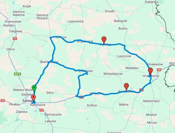 Trasa przejazdu I etapu wyścigu, który rozpocznie się o godzinie 10:00 w Zamościu, będzie przebiegała przez gminy Wojsławice i Kraśniczyn. Peleton około godziny 12:00 dotrze do gminy Wojsławice i Wojsławic, a następnie drogą wojewódzką dojedzie ok. 12.30 do Kraśniczyn od strony Kukawki. Dalej trasa wyścigu biegnie drogą wojewódzką 846 do miejscowości Wólka Kraśniczyńska, aż do skrzyżowania z drogą wojewódzką 843. Następnie zawodnicy drogą wojewódzką 843 udadzą się do miejscowości Drewniki, a stamtąd już do Majdanu Skierbieszowskiego. Zgodnie z planem wyścigu kolarskiego zawodnicy opuszczą nasz powiat o godzinie 12:46.