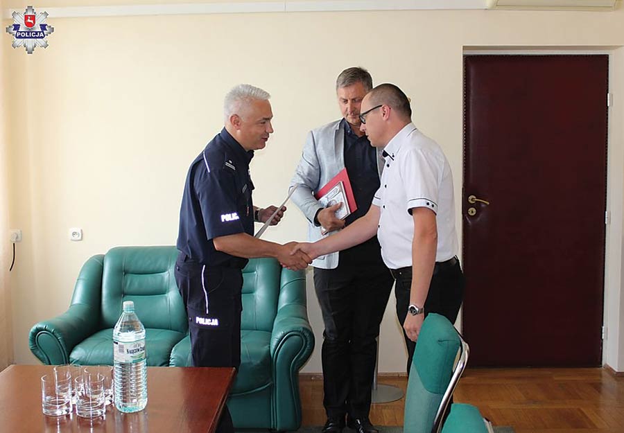 – Podczas spotkania komendant, podinsp. Tomasz Patra, starosta włodawski Andrzej Romańczuk oraz sekretarz gminy Włodawa Andrzej Kratiuk przekazali zaproszonemu gościowi listy gratulacyjne oraz drobne upominki i podziękowali za wzorowe zachowanie, które zasługuje na szczególne uznanie – mówi Elwira Tadyniewicz z KPP we Włodawie. –