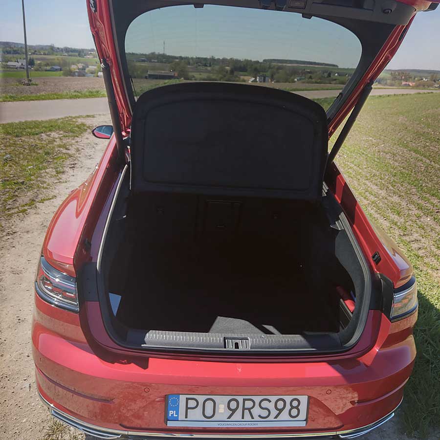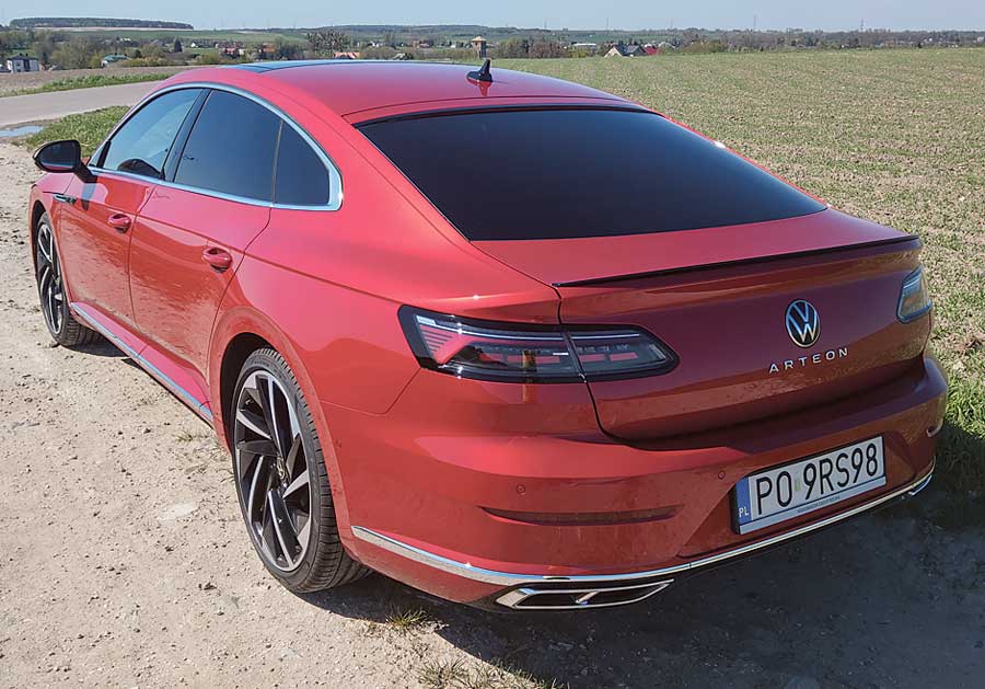 Adaptacyjne zawieszenie Arteona jest sztywne, ale nie przesadnie, więc nawet na gorszych nawierzchniach podróż mija w komfortowych warunkach. To także zasługa większego niż w Passacie rozstawu osi, dzięki któremu wygospodarowano olbrzymią przestrzeń na nogi dla pasażerów tylnej kanapy oraz na potężny kufer, do którego śmiało wejdzie nawet niewielka lodówka. Mimo przyzwoitych osiągów, na sportowe wrażenia z jazdy Arteonem nie ma co liczyć. Jedyny taki akcent zapewnia skrzynia, która np. przy dynamicznym starcie z pierwszego biegu często potrafi zerwać przyczepność przednich kół, choć ruszanie z piskiem opon autem aspirującym do klasy premium jest raczej passe.