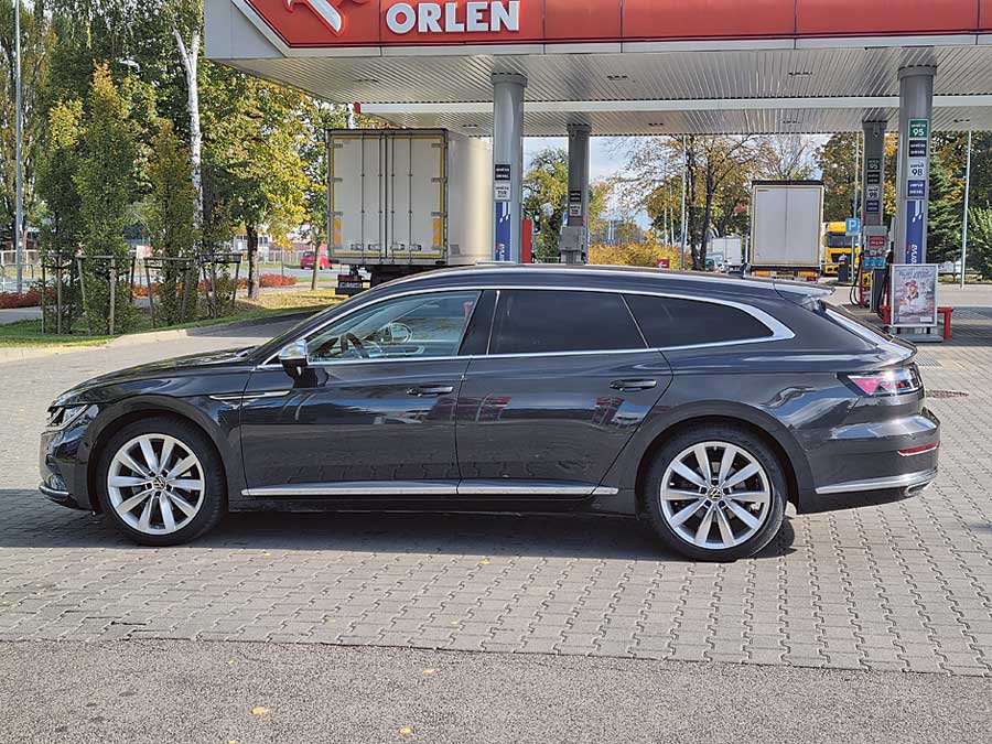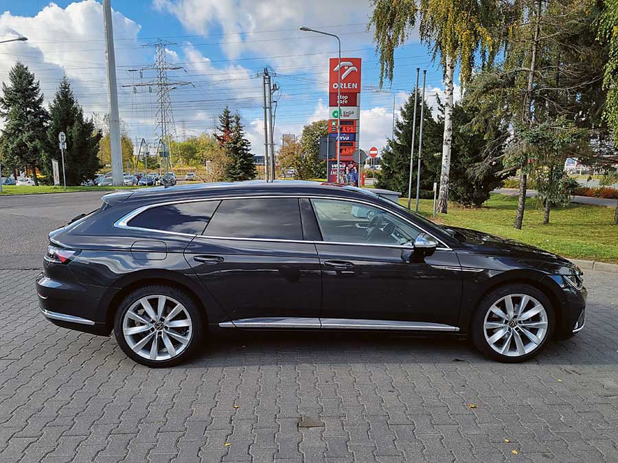 Adaptacyjne zawieszenie Arteona jest sztywne, ale nie przesadnie, więc nawet na gorszych nawierzchniach podróż mija w komfortowych warunkach. To także zasługa dużego rozstawu osi, dzięki któremu wygospodarowano olbrzymią przestrzeń na nogi dla pasażerów tylnej kanapy oraz na potężny kufer, do którego śmiało wejdzie nawet lodówka. Mimo przyzwoitych osiągów, na sportowe wrażenia z jazdy Arteonem nie ma co liczyć. Jedyny taki akcent zapewnia skrzynia, która np. przy dynamicznym starcie z pierwszego biegu często potrafi zerwać przyczepność przednich kół.