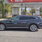 Auto prezentuje się świetnie. Ma opływowe kształty, nisko „siedzi” na ziemi, a ciemnoszary lakier świetnie współgra z chromowanymi wstawkami. Wnętrze jest niemal żywcem wyjęte z mniejszego brata, czyli jest bardzo ascetyczne w formie – deska jest prosta i czytelna, bez żadnych udziwnień i to samo stwierdzenie równie dobrze opisze pozostałe elementy wyposażenia kabiny. Jedna rzecz przemawia jednak dość mocno za Arteonem – ilość miejsca z tyłu. Tutaj spokojnie można założyć nogę na nogę, więc jeśli chodzi o przestrzeń i wygodę to Arteon jest limuzyną pełną gębą.