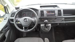 Wielkim plusem Californi jest to, że w jej wnętrzu konstruktorzy schowali elementy kampera, nie powodując przy tym rozrostu nadwozia. Dlatego auto zajmuje na parkingu tyle samo miejsca, co zwykłe T6 i prowadzi się równie łatwo. Manewrowanie bardzo ułatwiają kamery cofania. California prowadzi się niemal tak samo, jak auto osobowe, ale ma ten atut, że siedzi się o wiele wyżej, więc widzimy więcej i dalej niż większość innych użytkowników dróg. Zawieszenie jest zwarte i sztywne, ale równocześnie ciche. Wyciszenie kabiny jest niezłe, ale tylko do prędkości ok. 110-120 km/h. Powyżej robi się głośno przez markizę i bagażnik.