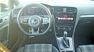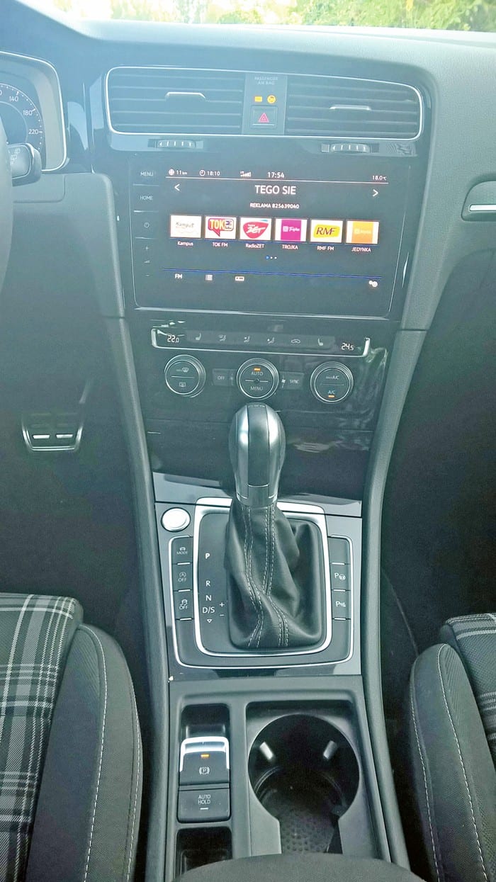 Volkswagen Golf GTD wygląda całkiem jak zwykły Golf. Dopiero bystre oko dostrzeże drobne różnice – nieco inny zderzak, czerwone zaciski hamulców, oraz rozsiane po karoserii emblematy „GTD”. Poza tym auto jest bodaj najbardziej rozpoznawalnym na rynku i nie do pomylenia z innym. Dwubryłowe, klasyczne nadwozie i wąskie reflektory każdy rozpozna bez trudu. W środku pierwszą rzeczą, na którą zwracamy uwagę, jest kraciasta tapicerka przypominająca tę z odmian GTI, sportowe fotele oraz deska rozdzielcza z wielkim wyświetlaczem na środku. Obsługa 8-calowego, dotykowego ekranu jest banalnie prosta i intuicyjna. Pracuje on podobnie jak tablet, ma też podobne funkcje. Za jego pomocą steruje się wszystkimi ustawieniami Golfa. Wbrew sportowemu charakterowi jest zastąpienie tradycyjnej dźwigni hamulca ręcznego małym przyciskiem umieszczonym obok lewarka zmiany biegów, ale to chyba znak czasów. Podobnie jak wirtualne zegary, które zastąpiły tradycyjne analogi. Świetna jest sportowa kierownica, i dobrze trzymające w zakrętach fotele. Mam jednak wrażenie, że przez nie wnętrze Golfa GTD jest jakby mniejsze. Na pewno jest mniej miejsca na nogi na tylnej kanapie. Bez zmian pozostał kufer, który ma pojemność 380 litrów.