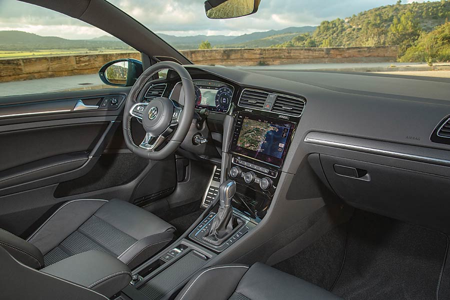 Volkswagen Golf GTD wygląda całkiem jak zwykły Golf. Dopiero bystre oko dostrzeże drobne różnice – nieco inny zderzak, czerwone zaciski hamulców, oraz rozsiane po karoserii emblematy „GTD”. Poza tym auto jest bodaj najbardziej rozpoznawalnym na rynku i nie do pomylenia z innym. Dwubryłowe, klasyczne nadwozie i wąskie reflektory każdy rozpozna bez trudu. W środku pierwszą rzeczą, na którą zwracamy uwagę, jest kraciasta tapicerka przypominająca tę z odmian GTI, sportowe fotele oraz deska rozdzielcza z wielkim wyświetlaczem na środku. Obsługa ponad 9-calowego, dotykowego ekranu jest banalnie prosta i intuicyjna. Pracuje on podobnie jak tablet, ma też podobne funkcje.