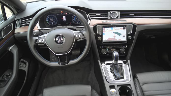 Testowe auto było bardzo bogato wyposażone. Na jego pokładzie znalazło się bodaj wszystko, co do zaoferowania w tym modelu ma Volkswagen – od skórzanej tapicerki, przez aktywne zawieszenie i kilka elektronicznych systemów wspomagających i ostrzegających kierowcę do nawigacji, czy bezkluczykowego dostępu do samochodu. Ceny Passata GTE zaczynają się od 179 190 zł.
