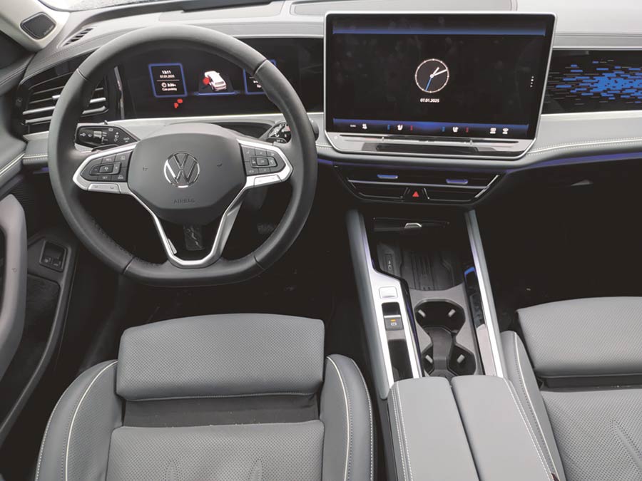 O ile z zewnątrz zmiany są kosmetyczne, to inżynierowie Volkswagena całkowicie przeprojektowali wnętrze, stawiając na materiały wysokiej jakości. W oczy rzuca się nowy, bardzo duży wyświetlacz z przejrzystą strukturą menu. Dzięki temu funkcjonalność ma stać na najwyższym poziomie, choć brak fizycznego panelu do obsługi nawiewów i klimatyzacji mnie akurat drażni. Fani technologicznych nowinek będę za to zachwyceni, bo w tym aucie dosłownie każdą funkcją, a jest ich mnóstwo, można zarządzać z wysokości centralnego monitora. Kabina jest na wskroś nowoczesna i cyfrowa.