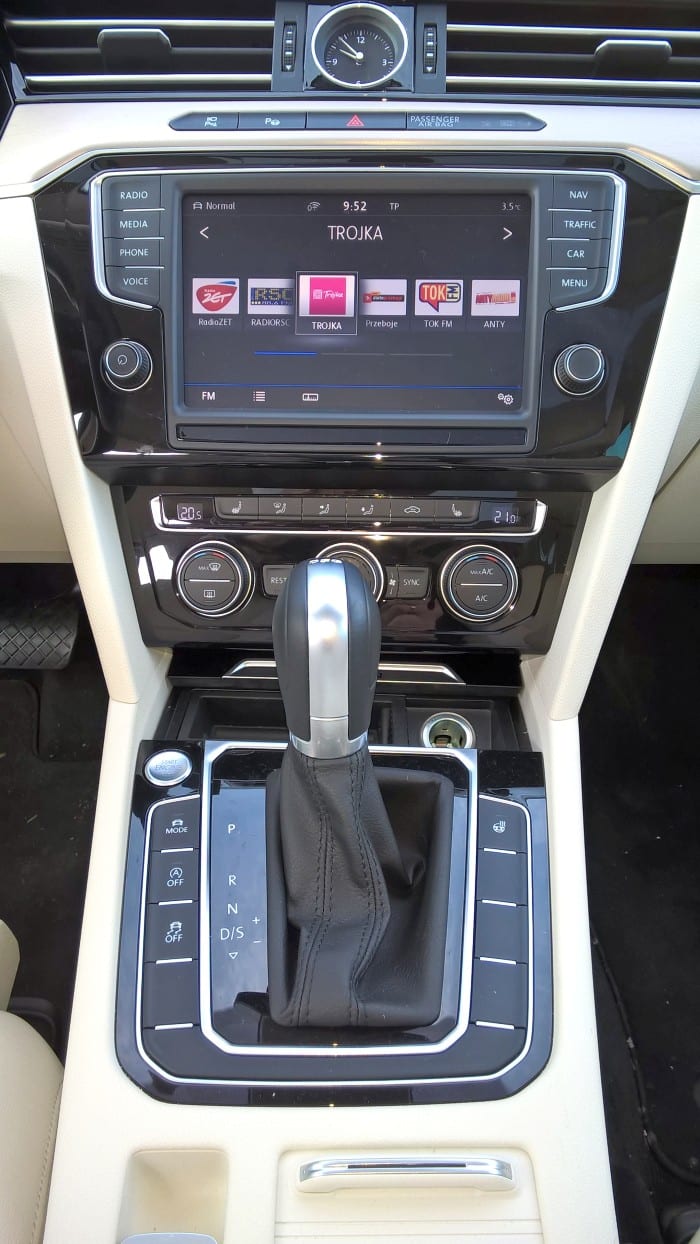 Ostatnia generacja Volkswagena Passata bardzo wyładniała. To zasługa klasycznych proporcji i postawienia na prostotę. W nadwoziu próżno wypatrywać najmniejszych choćby ekstrawagancji. Dominują proste linie, nie ma przetłoczeń, spojlerów, czy innych zbędnych gadżetów. Kremowy kolor wnętrza świetnie kontrastuje z czarnym lakierem. Po zajęciu miejsca w kabinie, na każdym kroku czuć, że mamy do czynienia z najlepszymi materiałami. Skóry siedzeń są mięciutkie i przyjemne w dotyku, miejsca w kabinie jest pod dostatkiem zarówno z przodu, jak i na tylnej kanapie, a do tego mamy jeszcze całkiem spory bagażnik z wysuwaną podłogą. Kształt deski rozdzielczej nie zaskakuje niczym. Jej projekt jest bardzo prosty i czytelny. Centralnie umieszczony wyświetlacz jest sercem samochodu i to za pomocą niego możemy konfigurować nasze auto oraz zmieniać jego funkcje. Przez całą szerokość deski biegnie elegancka, aluminiowa listwa podkreślająca dystyngowany charakter Passata. Trójramienna kierownica świetnie leży w dłoniach, ale to, co najlepsze kryje się dalej – tuż za nią. Chodzi o ciekłokrystaliczny wyświetlacz, który zastępuje analogowe zegary, a który pokazuje wszystkie wskazania komputera, łącznie z mapą. Po raz pierwszy z takim rozwiązaniem zetknąłem się kilka już lat temu w Audi A7, które wtedy było prawdziwym fenomenem. Dziś ta technologia jest dostępna dla o wiele szerszej rzeszy odbiorców, co mnie oczywiście bardzo cieszy. Do pełni szczęścia brakuje mi tylko jednego – kamery termowizyjnej, z której obraz trafiałby na wyświetlacz. Cóż, widocznie nie można mieć wszystkiego.