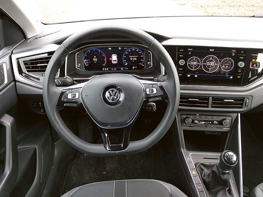Kabina jest bardzo ergonomiczna. Nowością są całkowicie cyfrowe zegary, wcześniej spotykane w wyższych modelach Volkswagena. Generalnie kabina bardzo przypomina tę znaną z Golfa, choć nie znajdziemy tu chociażby dotykowego panelu do włączania świateł. Mamy tu dwa wyświetlacze, jeden wielki i centralnie położony, drugi za kierownicą. Oba są bardzo czytelne i można je dostosować do preferencji kierowcy. Kierownica świetnie leży w dłoniach, fotele są wręcz idealnie wyprofilowane, a jedynym elementem, po którym znać, że siedzimy w aucie segmentu B są twarde plastiki pokrywające boczki drzwi. Materiały użyte do zabudowy deski rozdzielczej są już dużo lepszej jakości.