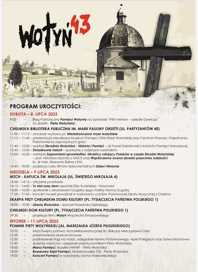 W Chełmie szykują się trzydniowe uroczystości upamiętniające 80. rocznicę Rzezi Wołyńskiej. W trakcie obchodów zaprezentowana ma być wizualizacja Centrum Prawdy i Pojednania oraz Muzeum Ofiar Rzezi Wołyńskiej w Chełmie. W planach jest też utworzenie „Skweru Pamięci Ofiar Rzezi Wołyńskiej”.