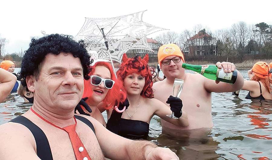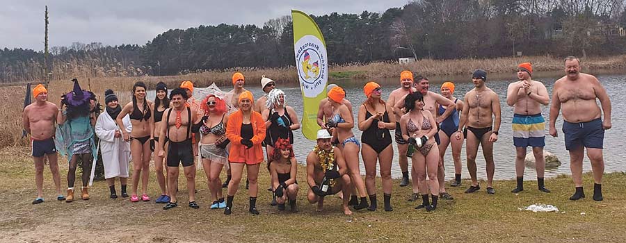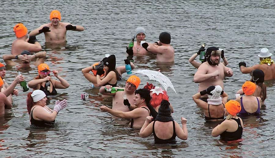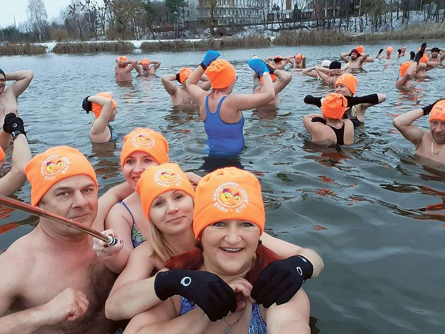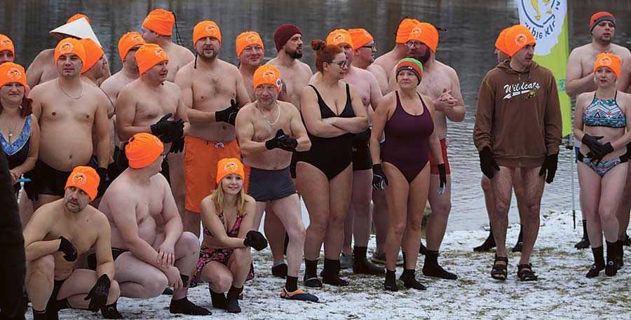 Nietypową gwiazdkę krasnostawskie morsy obchodziły 29 grudnia nad zalewem w Tuligłowach. W tym samym miejscu zwolennicy lodowatych kąpieli spotkali się też w Nowy Rok, 1 stycznia. W obu wypadach wzięło udział po kilkadziesiąt osób. (fot. Klub Morsów Krasnostawskie Karpie)