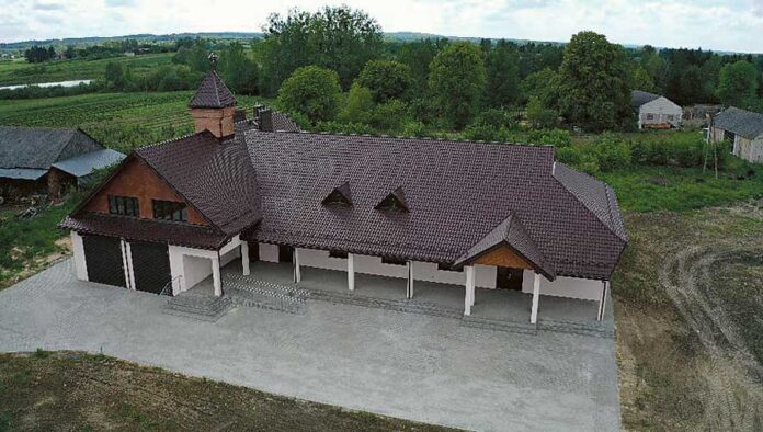 Etap trzeci inwestycji, roboty wykończeniowe, zrealizowany został w ramach Programu Rozwoju Obszarów Wiejskich na lata 2014-2020. Koszt inwestycji na tym etapie to 1 mln 299 tys. zł, z dofinansowaniem uzyskanym z funduszy europejskich w wysokości 500 tys. zł. (k, fotografia z drona – Przemysław Borys)