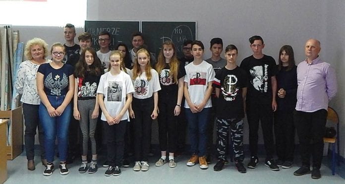 – Młodzież w tym dniu ubrana była w koszulki z wizerunkami naszych bohaterów, znakami, cytatami, które nawiązywały bezpośrednio do tematu projektu. Wybrani informowali zebranych o genezie powstania kotwicy – symbolu Polski Walczącej, znaku Narodowych Sił Zbrojnych i innych patriotycznych akcentach – mówi nauczyciel Tomasz Marczewski, inicjator projektu. (k)