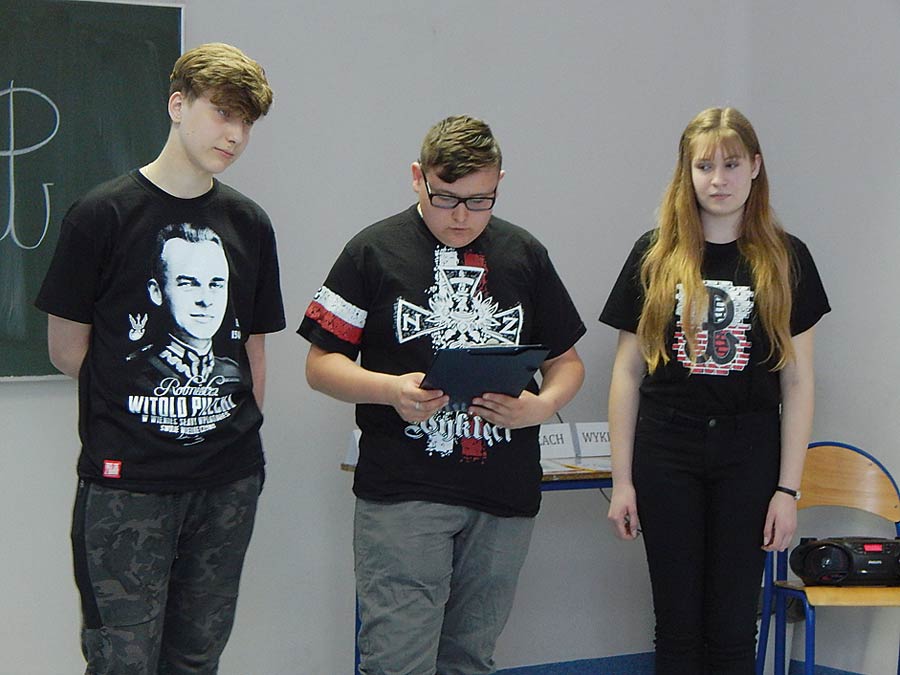 – Młodzież w tym dniu ubrana była w koszulki z wizerunkami naszych bohaterów, znakami, cytatami, które nawiązywały bezpośrednio do tematu projektu. Wybrani informowali zebranych o genezie powstania kotwicy – symbolu Polski Walczącej, znaku Narodowych Sił Zbrojnych i innych patriotycznych akcentach – mówi nauczyciel Tomasz Marczewski, inicjator projektu. (k)