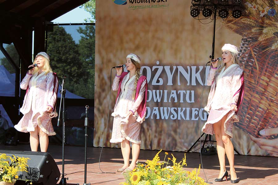 Następnie korowód z wieńcami przemaszerował nad Pompkę. Część oficjalną rozpoczęli gospodarze dożynek – starosta włodawski Andrzej Romańczuk oraz wójt gminy Wola Uhruska Jan Łukasik. Po kolejnych przemówieniach oficjeli, przyszedł czas na występy artystyczne. Na scenie zaprezentowały się m.in. Alebabki i Włodawska Orkiestra Dęta. Gdy publiczność gromko oklaskiwała kolejnych wykonawców, komisje konkursowe bacznie oglądały wieńce, smakowały potrawy i oceniały gminne stoiska.