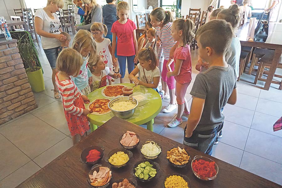 W trakcie wakacyjnych spotkań nie zabrakło zabaw ruchowych, konkursów i gier, które prowadziła Iwona Śledzińska. Były także zajęcia plastyczne, a ostatniego dnia dzieci poznały pracę w pizzerii „Klimat” w Urszulinie. Iwona i Sebastian Wojcieszukowie pokazali dzieciom technikę wykonania pizzy, po czym każde dziecko wcieliło się w rolę kucharza i przyrządziło swoją własną, wyjątkową pizzę.