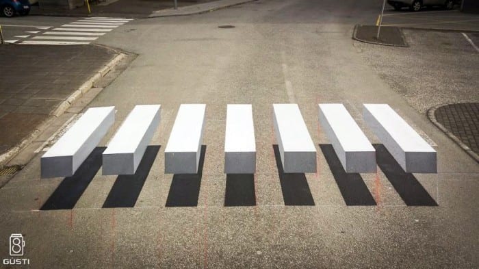 Władze jednego z islandzkich miasteczek wpadły na pomysł zwiększenia bezpieczeństwa na przejściach dla pieszych. Zamiast zwykłej zebry, na ulicach namalowano tam pasy, które wyglądają jakby unosiły się nad drogą.