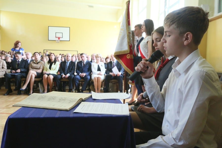 Najmłodsze pokolenie absolwentów reprezentował Mateusz Bis, który szkołę skończył rok temu: – Po ukończeniu naszego gimnazjum poszedłem do V LO na ulicy Lipowej. Nie miałem trudności z dostaniem się, bo tutaj mnie bardzo dobrze przygotowano. Miałem świetnych nauczycieli. W szkole była i jest bardzo dobra atmosfera, bo każdy każdego zna i wszyscy się lubią – powiedział.