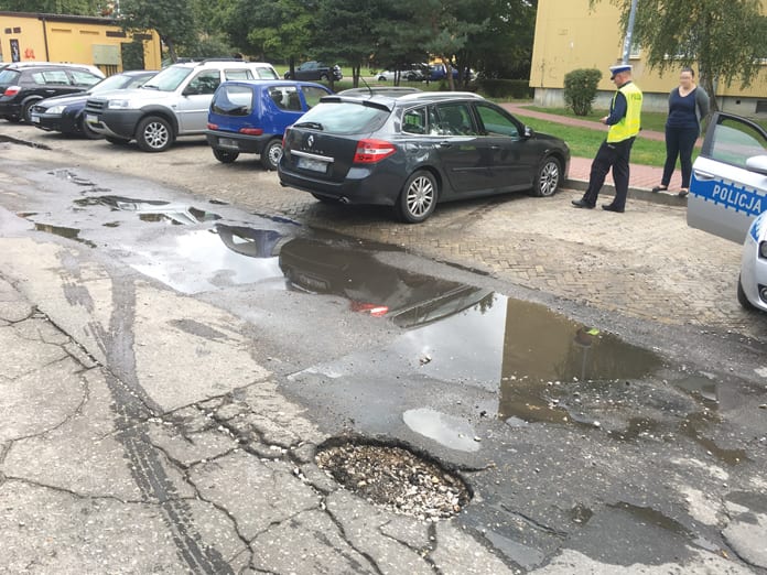 – To było na osiedlowej ulicy za budynkiem poczty przy I AWP – opowiada chełmianin. – Nie jechałem szybko, bo jest tam ograniczenie do „trzydziestki”, a poza tym tam zawsze jest dosyć dużo aut i pieszych, więc trzeba uważać. Próbując ominąć inne auto wpadłem w ogromną dziurę w drodze. Następstwem było przebicie dwóch opon, skrzywienie przedniej felgi i zgubienie dekla do niej.