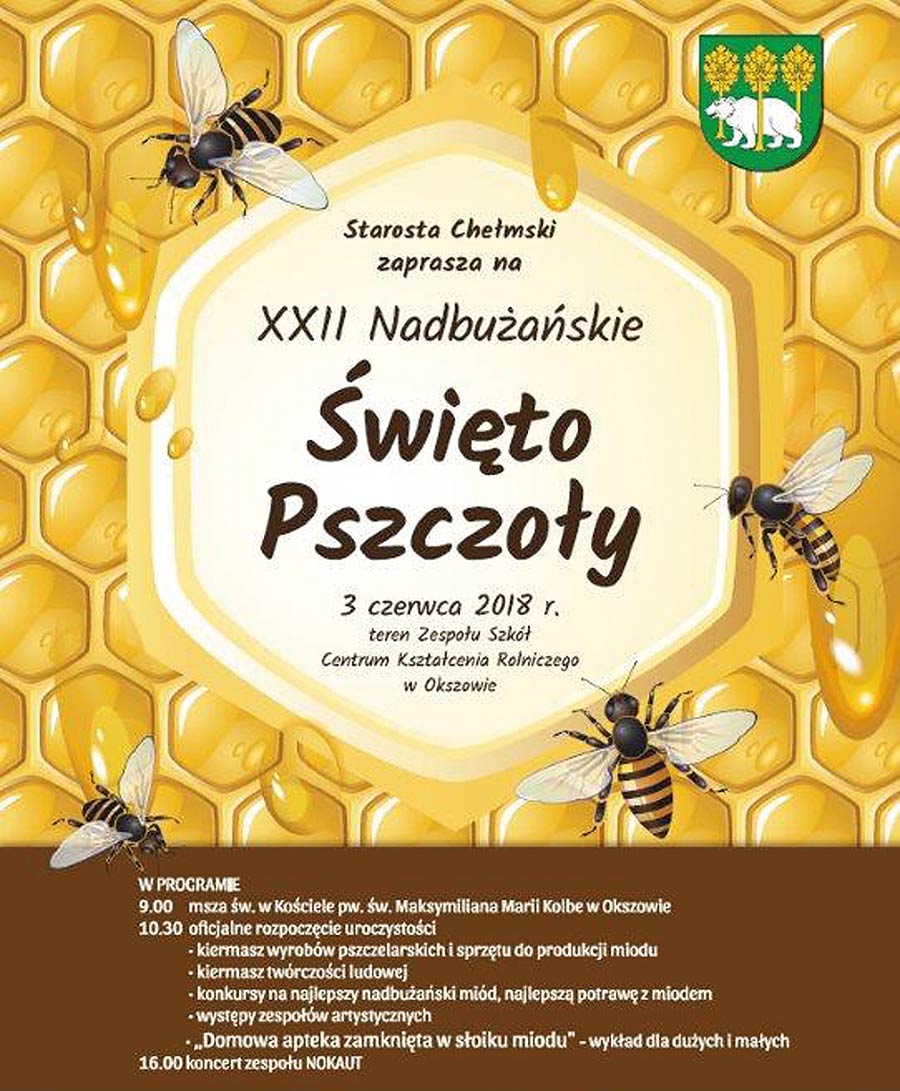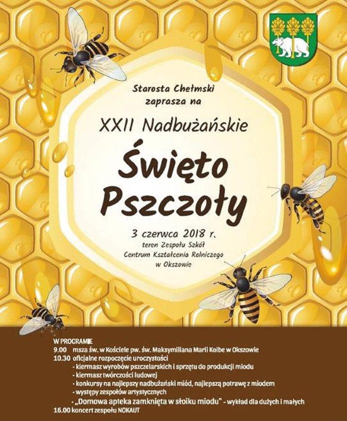 XXII Nadbużańskie Święto Pszczoły odbędzie się 3 czerwca na terenie Zespołu Szkół Centrum Kształcenia Rolniczego w Okszowie. Jest to nie lada gratka nie tylko dla smakoszy miodu, ale dla wszystkich tych, którzy lubią zabawę w plenerze!