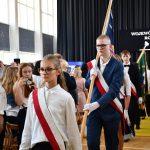 Uroczystość rozpoczęła się od wprowadzenia pocztów sztandarowych i wspólnego odśpiewania hymnu państwowego, a także od wykonania pieśni „Gaude Mater Polonia” przez szkolny zespół wokalny. Wszyscy zgromadzeni oddali także hołd ofiarom II wojny światowej, w 86. rocznicę wybuchu