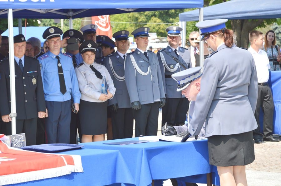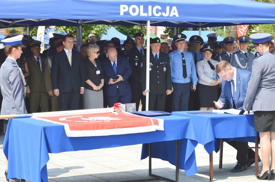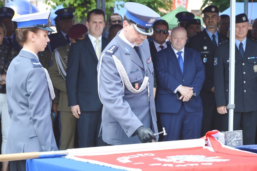 Podczas uroczystości na Rynku Miejskim podinsp. Mariusz Kołtun, komendant wojewódzki policji w Krasnymstawie, odebrał sztandar nadany jednostce. Gwoździe w sztandar wbili m.in. komendant główny policji nadinspektor dr Jarosław Szymczyk, kmendant Wojewódzki Policji w Lublinie insp. Paweł Dobrodziej, burmistrz Krasnegostawu Hanna Mazurkiewicz, starosta krasnostawski Janusz Szpak i komendant Kołtun. Więcej o wydarzeniu w najbliższym wydaniu Nowego Tygodnia. (fot. Karol Garbacz)