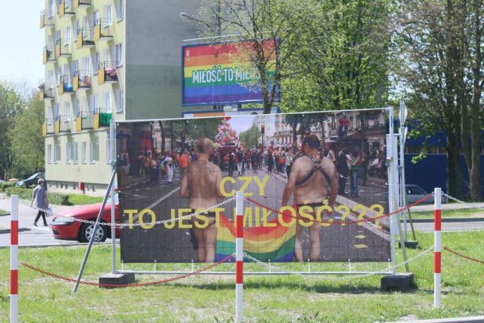 Ustawione w centrum Świdnika trzy banery przedstawiające dwóch roznegliżowanych mężczyzn niosących tęczową flagę i napis „Czy to jest miłość???”, to odpowiedź na tęczowy billboard „Miłość to miłość” zawieszony przed kilkunastoma dniami w mieście przez aktywistów LGBT. Kto jest organizatorem kontrakcji nie wiadomo.