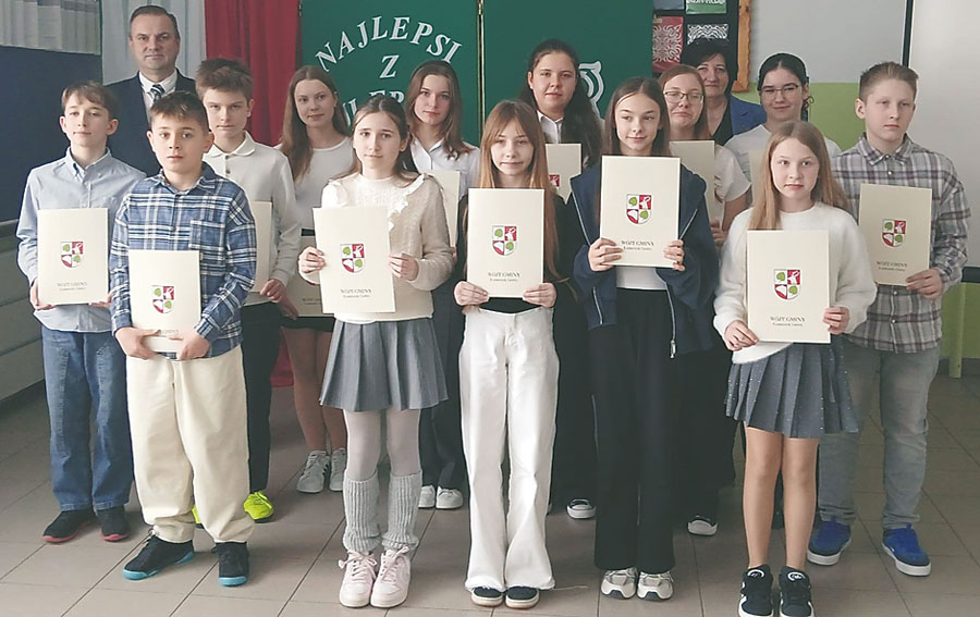 W klasach IV–VI stypendia wójta za wysokie wyniki w nauce otrzymali: Dominika Wasyluk (średnia ocen: 5,64), Antonina Tokarczuk (5,55), Filip Toczony (5,45), Maja Skubisz (5,4), Michał Sawa (5,4), Karol Tokarczuk (5,36), Nikola Pawelec (5,27), a w klasach VII-VIII: Weronika Szewczyk (5,64), Aleksandra Ozonek (5,23), Daniel Wasyluk (5,15), Luiza Gładosz (5,15) i Kornelia Paraficz (5). Stypendium artystyczne otrzymała Aleksandra Chodorowska. W części artystycznej wystąpiła Weronika Szewczyk. (k)