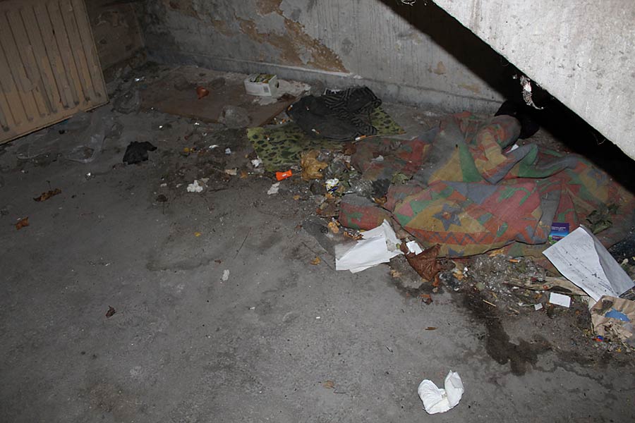 – Gdy chcemy przepędzić bezdomnych, dzwonimy na policję. Od nich słyszymy, że oni tu nic nie mogą zrobić, że trzeba kontaktować się z administratorami budynku. A oni nam z kolei odpowiadają, że mamy się tym zająć sami. To jest jakaś kpina. I to nie są żadni nasi koledzy. Od jakiegoś czasu przychodzi tu kobieta, zawszona koczuje w tej piwnicy. Nikt jej nie zna. Ostatnio zabrało ją stąd pogotowie, bo jej stan się pogorszył. W środę, 11 kwietnia, przywieźli ją tu z powrotem. Czy to jest normalne? – pyta pani Agnieszka. – A co do tłumaczenia odnośnie uciążliwych lokatorów, teksty „sprawa jest trudna” słyszymy od lat. Jeśli mieszkają tu ludzie, którzy od kilkunastu lat nie płacą rachunków i robią tu melinę, to dlaczego wreszcie ktoś się za nich nie weźmie?