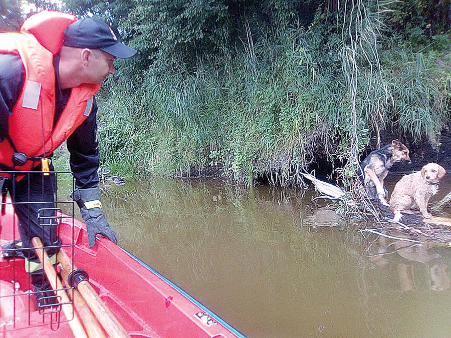 – We wtorek, około godziny 15, otrzymaliśmy nietypowe zgłoszenie – mówi mł. bryg. Waldemar Makarewicz z PSP we Włodawie. – W miejscowości Dołhobrody (gm. Hanna) koń wpadł do szamba. Do zdarzenia wysłane zostały 2 zastępy – z JRG Włodawa oraz OSP Dołhobrody. Na miejscu okazało się, że zwierzę nie mogło samodzielnie wyjść ze zniszczonego zbiornika. W tym przypadku nasze działania polegały na częściowym odpompowaniu szamb, a następnie, przy użyciu specjalnych pasów i ciągnika rolniczego z ładowaczem czołowym, wyciągnięciu zwierzęcia. Koń nie doznał przy tym większych obrażeń i szybko oddalił się od swojej pułapki – wyjaśnia rzecznik. Dwa dni później, w czwartek (4 sierpnia) włodawscy strażacy znowu jechali na ratunek zwierzakom. Tym razem pomocy potrzebowały dwa psiaki, które ktoś wrzucił do Bugu. Wystraszone kundelki dryfowały na ułamanym konarze i by się do nich dostać, trzeba było użyć łodzi. – Najbliższe miejsce dogodne do wodowania znajdowało się w pobliżu Szuminki. Dotarcie do psiaków zajęło nam 40 minut, bo bardzo niski stan wody sprawił, że w wielu miejscach musieliśmy przepychać łódź przez mielizny – tłumaczy Makarewicz. –