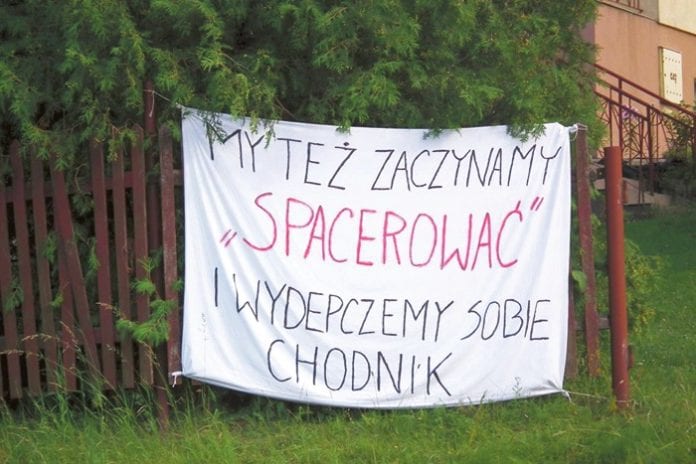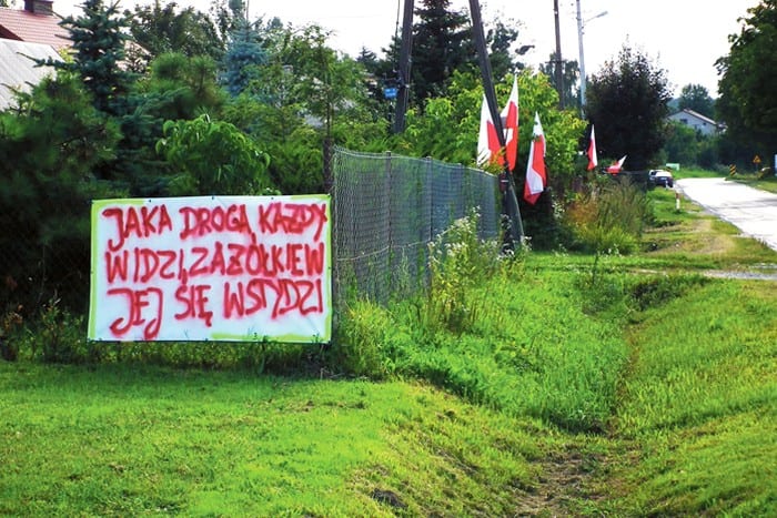 Kilka tygodni temu na domach w podkrasnostawskiej Zażółkwi pojawiły się biało-czerwone flagi. Kilka dni później dołączyły do nich wielkie transparenty z napisami: Wydepczemy sobie chodnik”, „Żądamy chodnika”, „My też chcemy mieć normalną drogę”, „U nas błoto i kałuże, nie możemy żyć tak dłużej”, czy „Jaka droga każdy widzi, Zażółkiew się jej wstydzi”. W ten sposób okoliczny mieszkańcy zareagowali na fakt, że od lat nie mogli doprosić się nie tylko o remont drogi, ale i co ważniejsze, wybudowania przy niej chodnika. Inicjatorką akcji została Wanda Domańska, emerytowana nauczycielka z Zażółkwi. To właśnie od jej internetowego wpisu, adresowanego – co sama podkreślała – „chyba już tylko do Pana Boga”, rozpoczął się bój o drogę. Kobieta pytała: – Czy my jesteśmy gorszym sortem mieszkańców gminy Krasnystaw? Czy samorządy gminy, powiatu i województwa mówią innymi językami, że nie mogą się przez tyle lat dogadać? Czy znajdzie się ktoś, kto zawalczy o nasze bezpieczeństwo? Co musi się jeszcze wydarzyć, by nasza wieś wyglądała jak Małochwiej Duży, Łopiennik, Siennica Różana, Jaślików, w którym mieszka wójt gminy Krasnystaw, Gorzków i inne? Czarę goryczy przelała tragedia. Niedługo po tym, jak w Zażółkwki zawisły transparenty na opisywanej drodze doszło do śmiertelnego potrącenia pieszego. Zginął 54-letni mężczyzna uderzony przez dostawczego busa. Tego było za wiele. W sprawę zaangażowała się rada powiatu krasnostawskiego, która zaapelowała do Zarządu Dróg Wojewódzkich o rychłe rozwiązanie problemu. I opłaciło się!