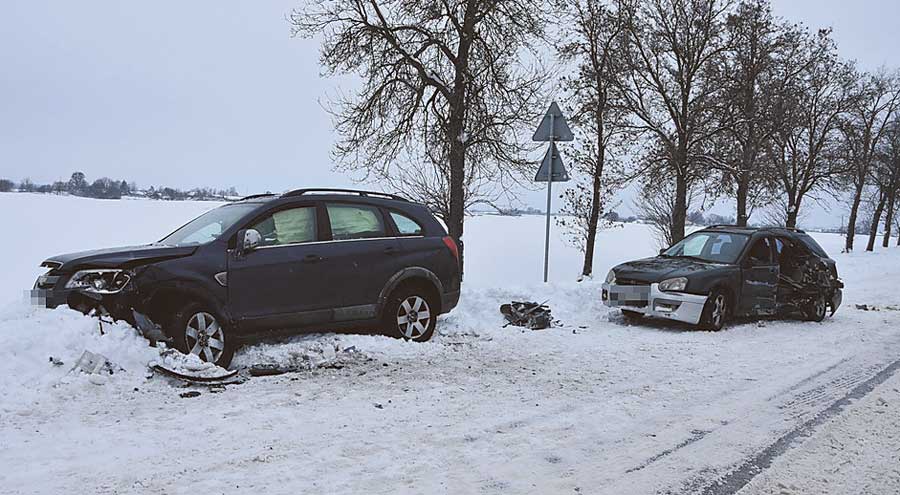 Pogotowie zabrało do szpitala kierujących. Na szczęście obrażenia okazały się niegroźne i po udzieleniu pomocy medycznej zostali oni wypisami. – Apelujemy o zachowanie ostrożności na drodze. Opady atmosferyczne powodują, że nawierzchnia jezdni staje się śliska, wydłuża się droga hamowania, a zalegający śnieg czy też błoto pośniegowe powodują utratę przyczepności pojazdu. Dlatego pamiętajmy o dostosowaniu prędkości jazdy nie tylko do obowiązujących limitów, ale też do warunków panujących na drodze oraz własnych umiejętności – podkreśla komisarz Czyż. (pc)