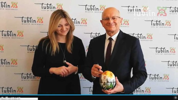 Nasza, lubelska pisanka została pomalowana przez Beatę Stepaniuk-Kuśmierzak, zastępcę prezydenta Lublina ds. kultury, sportu i partycypacji. Pani prezydent strusie jajo ozdobiła razem z synkiem Stasiem. Postawili na decoupage. Na jajku pojawiły się motywy charakterystyczne dla miasta. – Jest to pisanka wyjątkowa, na której znalazły się symbole Lublina: zamek, wieża trynitarska, kamienice Starego Miasta i Krakowskiego Przedmieścia oraz herb miasta – lubelski koziołek.