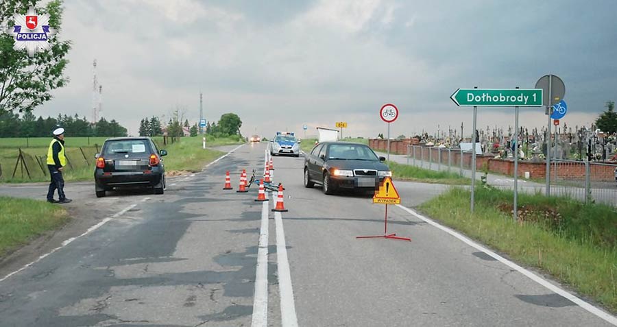 W poniedziałek (14 maja) około godziny 17.45 w Dołhobrodach (gm. Hanna) na drodze wojewódzkiej nr 816 doszło do wypadku drogowego z udziałem rowerzystki. – Wstępne ustalenia policjantów wskazują, że 68-letnia mieszkanka gminy Hanna wyjechała jednośladem z drogi podporządkowanej i uderzyła w Skodę Octavia kierowaną przez 37-latka z powiatu otwockiego – mówi Elwira Tadyniewicz z KPP we Włodawie.