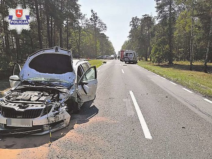 W wyniku kolizji droga została całkowicie zablokowana. Kierujący zostali przebadani alkomatem – wszyscy trzeźwi. Prowadzący Skodę 41-letni mieszkaniec Lublina został przewieziony do szpitala we Włodawie, ale okazało się, że nie doznał obrażeń. Uszkodzenia były na tyle poważne, że zatrzymano dowody rejestracyjne wszystkich pojazdów. (bm)