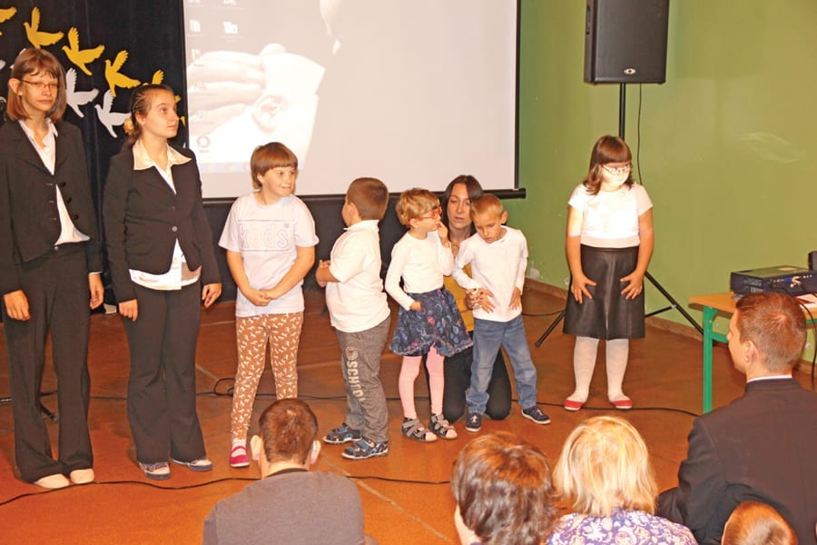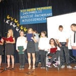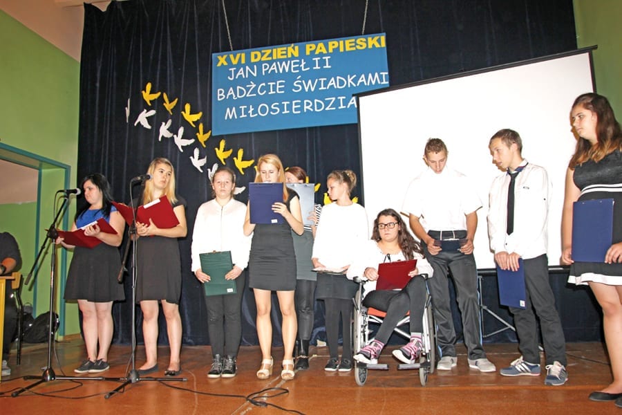Treść akademii przeplatały współczesne piosenki w wykonaniu uczennic Izy Mikulskiej i Patrycji Iwaniuk. Akademia była również okazją do wręczenia przez dyrektor SOSW Irenę Dejer dyplomów i nagród uczestnikom konkursu plastycznego pod hasłem „Jan Paweł II – bądźcie świadkami miłosierdzia”. Na zakończenie uroczystości wszyscy uczniowie otrzymali od ks. Krzysztofa Zawadzkiego zakładki do książek z wizerunkiem Jana Pawła II. Uroczystość przygotowali: Beata Bytof, Monika Skibińska i ks. Krzysztof Zawadzki. (a)
