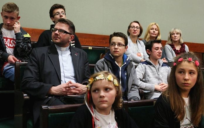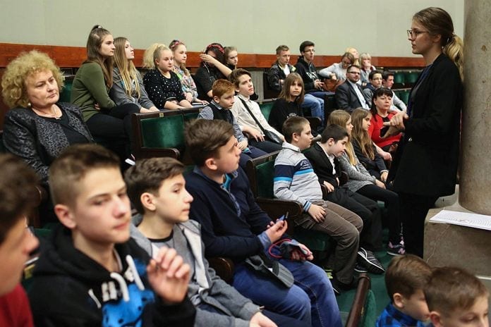 Dzieci przyjechały do sejmu na zaproszenie poseł Teresy Hałas. Towarzyszyły im: dyrektor ZS nr 4 Alicja Kasprzak-Żeżuła, dyrektor ZS nr 5 Justyna Haładyj, wychowawcy i ks. Rafał.