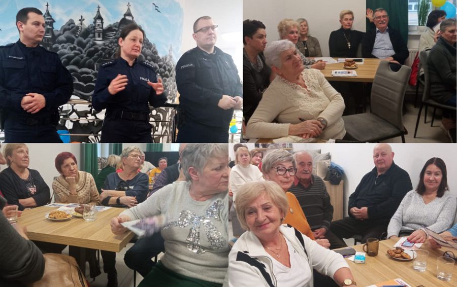 Gośćmi spotkania byli funkcjonariusze Komendy Miejskiej Policji w Chełmie. Policjanci asp. Katarzyna Kaszuba, asp. Tomasz Stępniak oraz asp. Marcin Sajdłowski omówili najczęściej spotykane metody oszustw, takie jak „na policjanta”, „na wnuczka”, „na pracownika urzędu lub instytucji”, „telefon z banku”, „na ankietera”, a także przestępstwa internetowe i inne formy wyłudzeń.