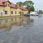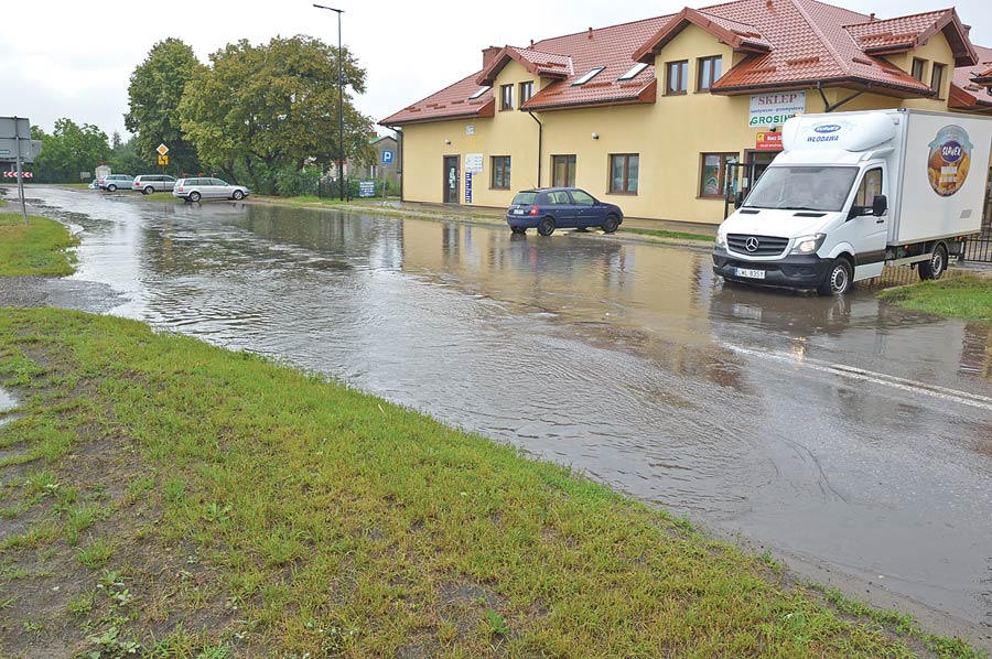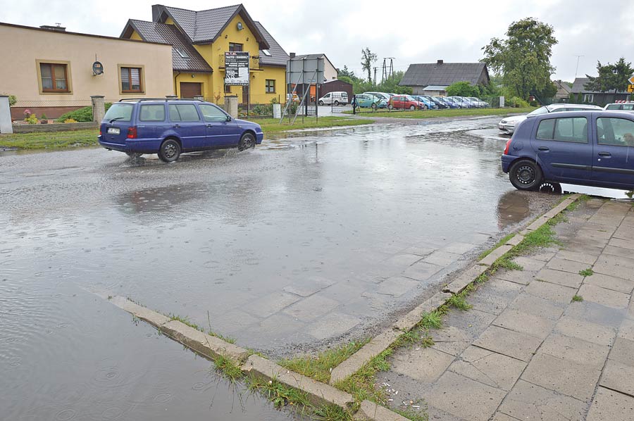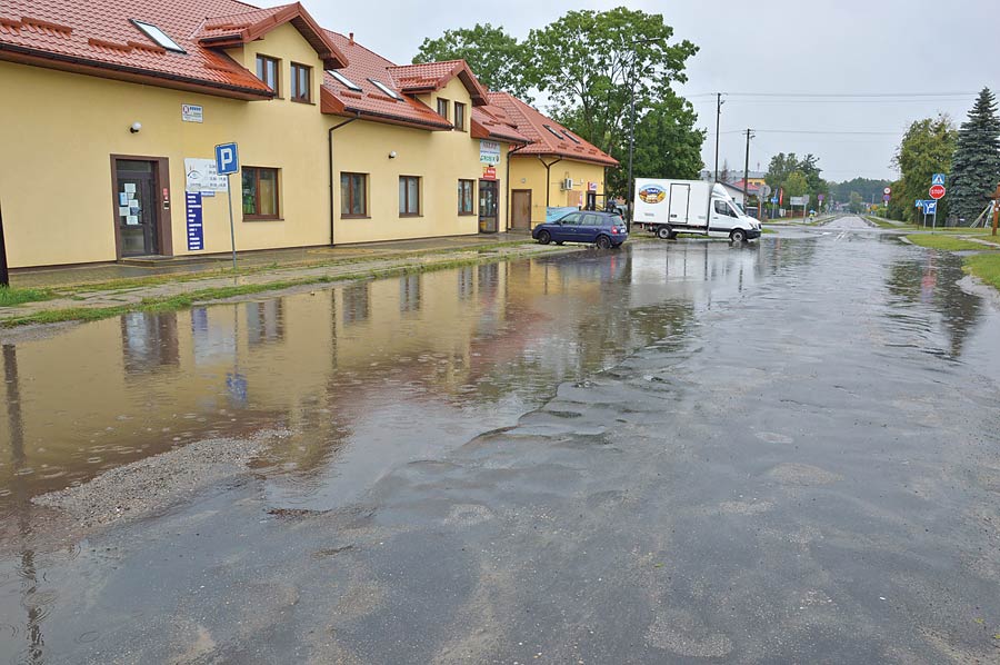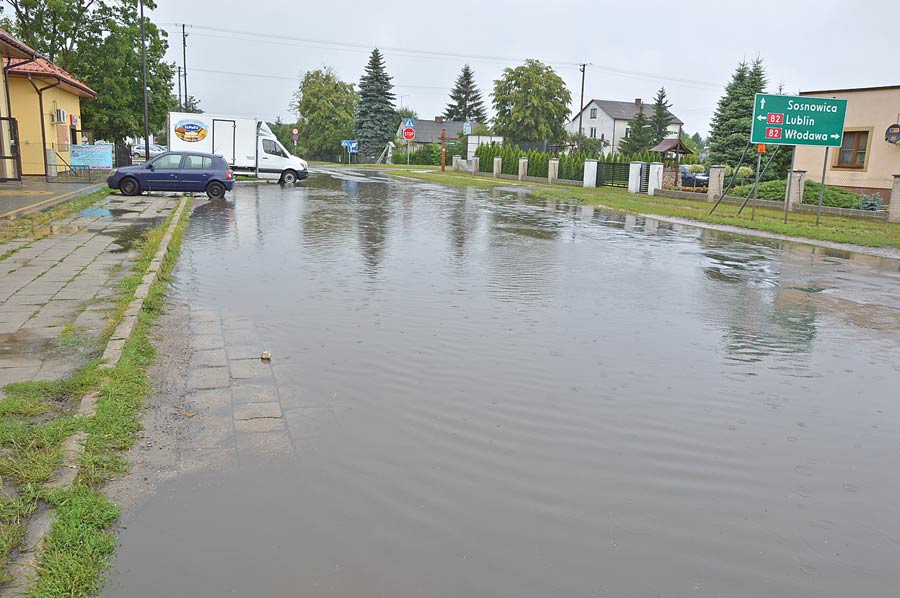 Tradycyjnie już deszcz napełnił też tzw. basen, czyli szosę i parking przy skrzyżowaniu krajowej 82-ki z drogą powiatową w kierunku Hańska znacznie utrudniając dostęp do usytuowanych tam sklepów i lokali.