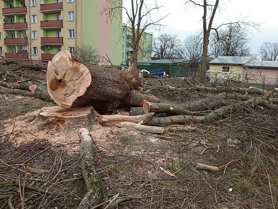 Z trzynastu drzew rosnących na działce u zbiegu ulicy Koszarowej i al. Piłsudskiego ostały się jedynie dwa. Pozostałe, w tym m.in. okazałe lipy i dorodny jesion, poszły pod topór. Pod informacją o „rzezi drzew”, którą ktoś zamieścił w Internecie, natychmiast pojawiły się mocno krytyczne komentarze. Internauci mieli żal do burmistrza, że wydał zgodę na wycinkę i że „nie zadrżała mu ręka, kiedy podpisywał wyrok na drzewa”.